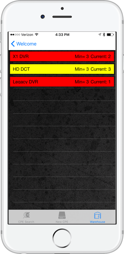 On warehouse day, know exactly which CPEs you are low on with clear color coded visuals